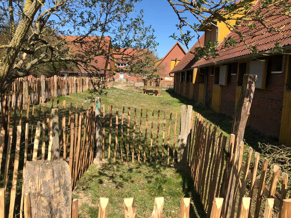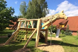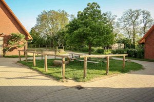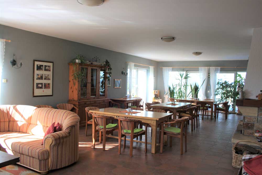 Die 1993/94 erbaute großzügige Hofanlage besteht aus einem Haupthaus, u.a. mit Kaminsalon, Billard, Sauna und privatem Schwimmbad, dem Verwalterhaus mit Wagenschuppen, drei Stallgebäuden und einem Gästehaus mit sechs Appartements.
