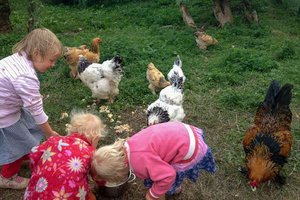 Im Sommer 2012 haben wir unsere Hühner angeschafft und essen seitdem sehr schöne große wohlschmeckende Eier von unseren freilaufenden glücklichen Hühnern. Wir haben aktuell einen Hahn sowie mehrere Legehennen.