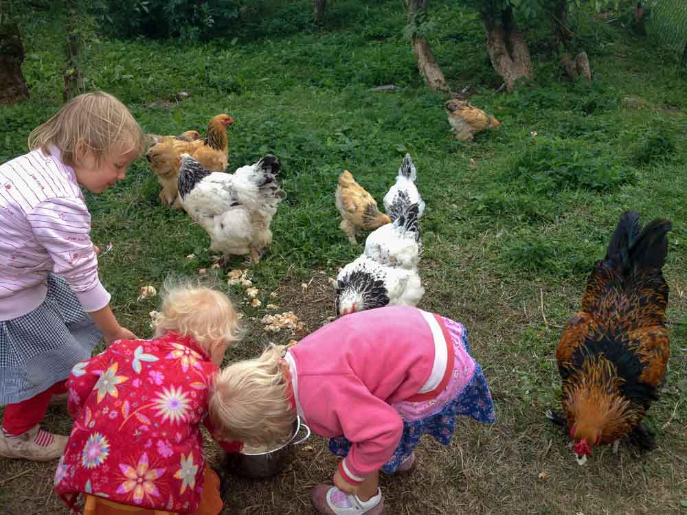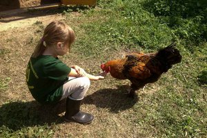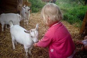 Neben Hühnern, Schafen und Ziegen haben wir auch Schweine, welche das Herz der Kinder höher schlagen lassen. Sind sie doch dankbar für jedes Hälmchen Gras aus einer kleinen Kinderhand, so lassen sich auch die Jüngsten immer wieder begeistern.